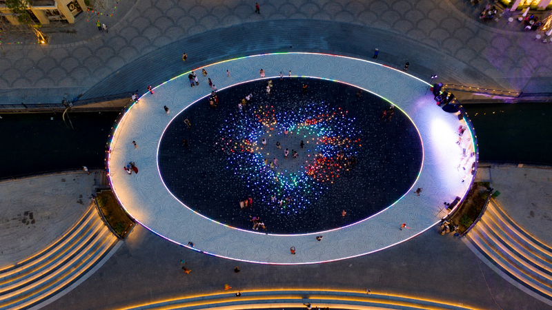 Chiếc cầu chữ O rực sáng lung linh mỗi khi đêm về là một trong những nơi check-in không thể bỏ lỡ khi đến MerryLand Quy Nhơn.