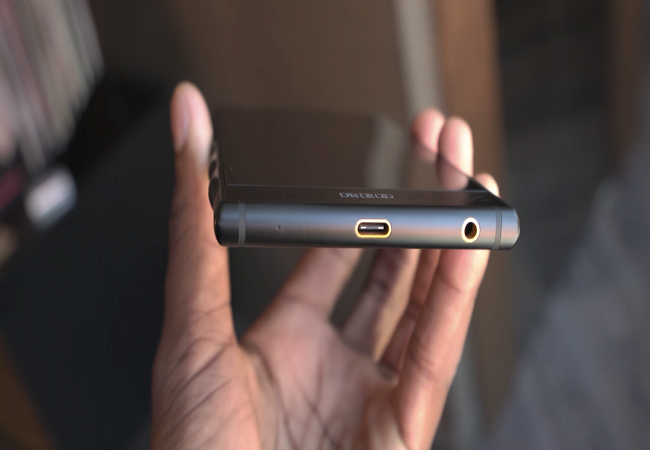 Cạnh dưới của Hydrogen One có một cổng USB-C và một giắc cắm tai nghe.