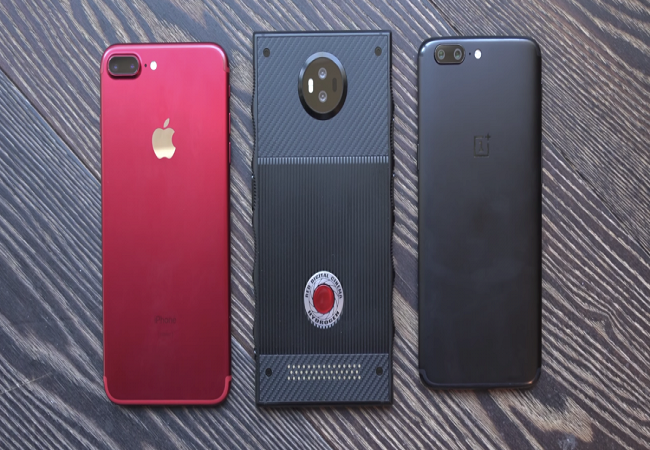 Điện thoại Hydrogen One tương đối lớn và dày. So sánh của Brownlee cho thấy mẫu điện thoại này cao hơn và lớn hơn iPhone 7 Plus và OnePlus 5.