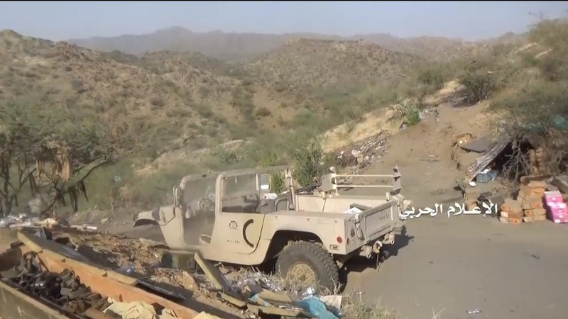 Lực lượng Houthi thu giữ chiến lợi phẩm của quân đội Ả rập Xê-út trong cuộc chiến trên vùng biên giới. Ảnh: Yemen Observer.