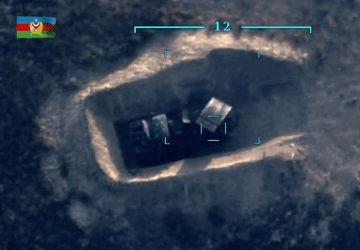 Quân đội Azerbaijan cũng công bố các hình ảnh tư liệu về chiến tắng của họ, trong đó có một đoạn video do máy bay không người lái (UAV) của quân đội Azerbaijan quay cho thấy, khi các lính dự bị của Quân đội Armenia đã đến địa điểm tập trung trên một chiếc xe tải quân sự; họ vừa xuống xe thì chiếc xe quân sự này bất ngờ bị trúng bom và phát nổ khiến nhiều người không kịp chạy thoát và tung xác trên không, hiện trường sau vụ tấn công ngổn ngang thi thể.