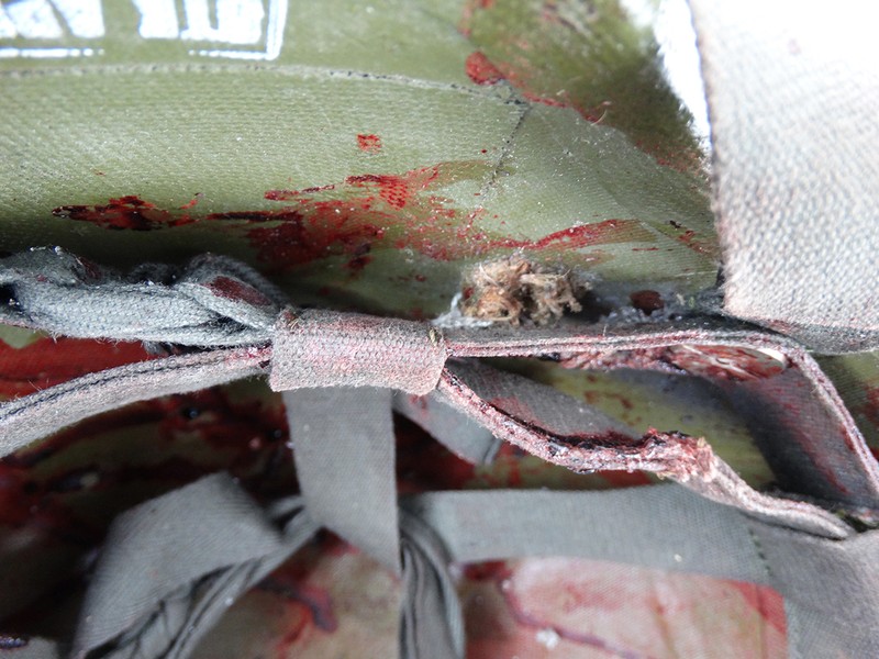 Viên đạn không xuyên được, làm xước một miếng lớp vỏ ngoài của mũ bảo hiểm, phía trong mũ hoàn toàn không bị tổn hại. Binh sĩ cho biết, có cảm giác như bị đấm trúng bằng găng tay, hoàn toàn không bị chấn động mạnh hay bị thương.