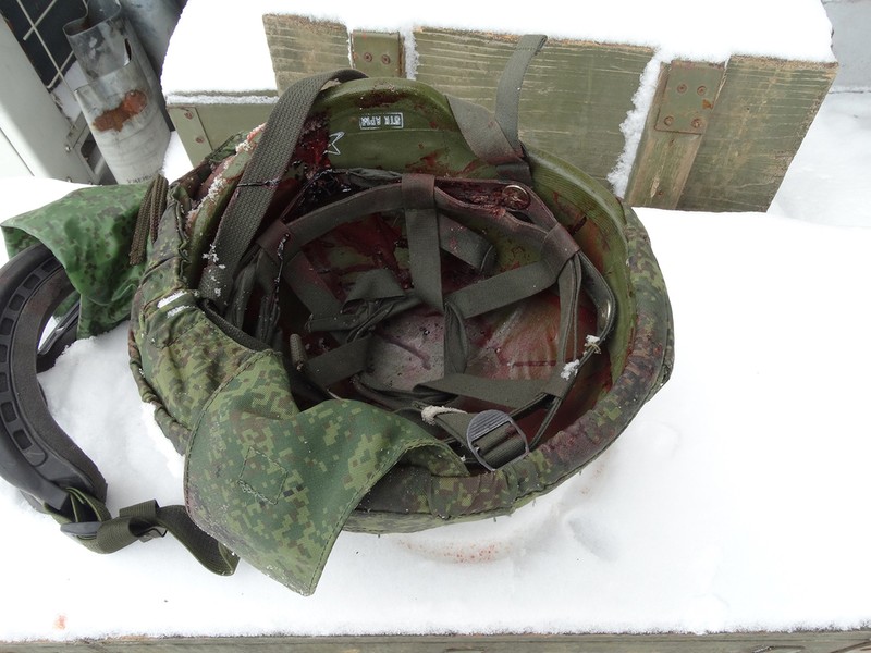 Trong một trận đánh đêm khoảng tuần trước (08.01 – 13.01) một binh sĩ Donetsk đã bị trúng một viên đạn của lính Ukraine . Từ kinh nghiệm và những kết quả bắn kiểm tra mũ bảo hiểm, vết đạn bắn được xác định là đạn AK cỡ nòng 7,62 mm (có thể được bắn ra từ súng AKM hoặc một loại súng tương đương).