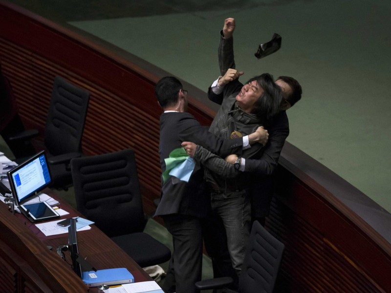 Nghị sĩ Hong Kong dùng mọi thứ phang nhau
