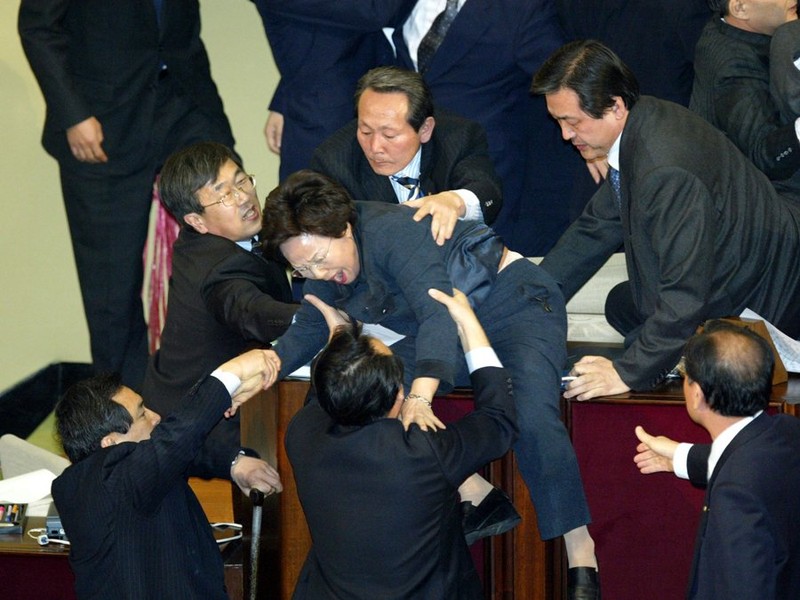 Nữ nghị sĩ Hàn Quốc chạy trốn khỏi cuộc ẩu đả