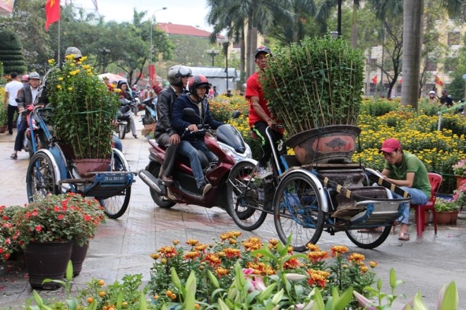 Dịch vụ chở hoa, cây cảnh thuê cũng giúp nhiều lao động có thu nhập trong những ngày cận Tết. Chiều nay, trời ở nhiều tỉnh miền Trung lại lất phất mưa.