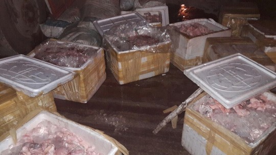 Chỉ vài ngày, lực lượng CSGT trạm Thăng Bình phát hiện và bắt giữ hơn 4 tấn thịt, nội tạng động vật bốc mùi hôi thối Ảnh: QV