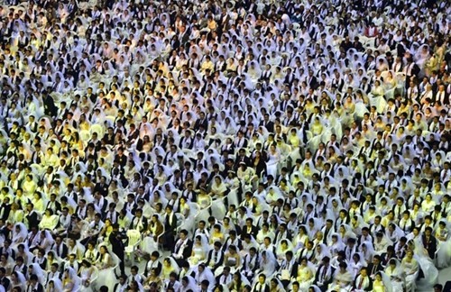 Theo AFP, 3.000 cặp đôi đến từ 62 quốc gia trên thế giới tham dự lễ cưới tập thể tại Gapyeong, phía đông thủ đô Seoul (Hàn Quốc). Hôn lễ tập thể hoành tráng kéo dài tới 3 giờ đồng hồ.