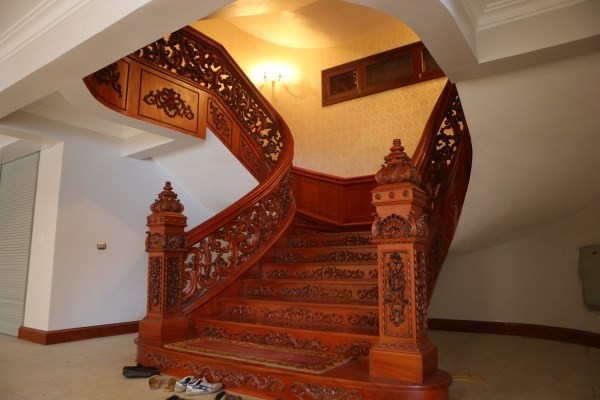 Với nội thất chủ đạo bằng loại gỗ gõ đỏ quý hiếm được thiết kế từ trên xuống dưới đã tạo nên sự sang trọng và đẳng cấp cho gia chủ. Bên trong ngôi nhà, những đồ vật và các kết cấu trang trí được thiết kế một cách tinh sảo, bắt mắt.