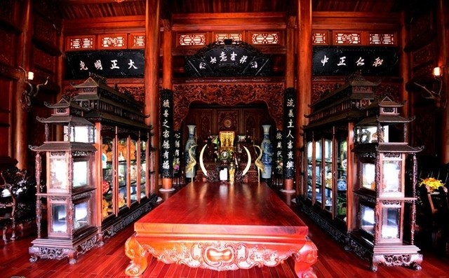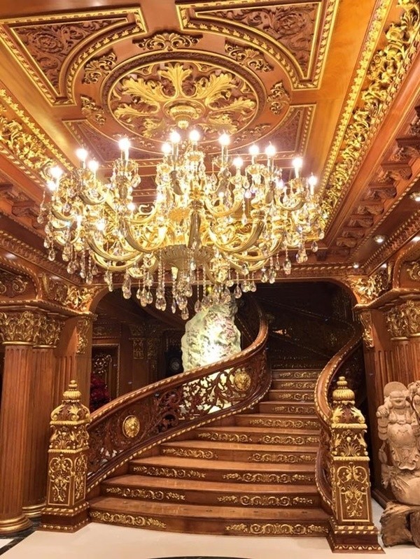 Để có được sự hoàn mỹ, gia chủ đã không ngần ngại bỏ thêm hàng tỷ đồng để thiết kế lắp đặt hệ thống đèn cao cấp để làm nổi bật các chi tiết tinh xảo của trần nhà, tường hay các hoa văn được chế tác từ gỗ quý.