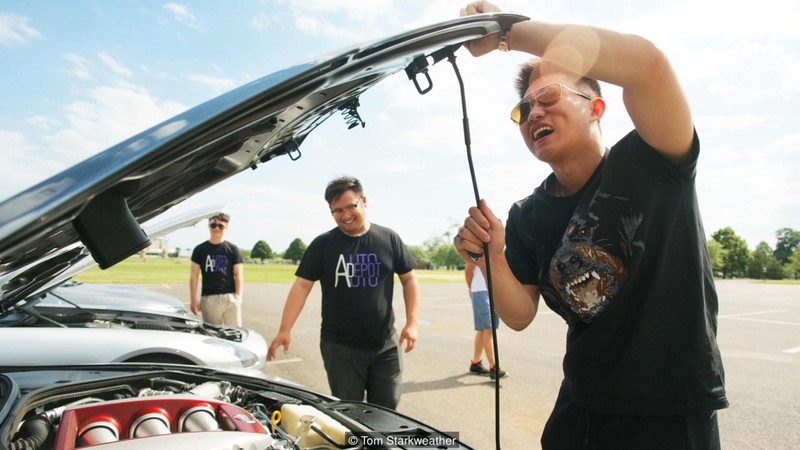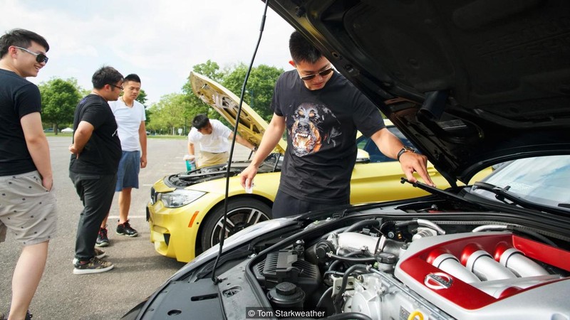 Shawn Mao, một du học sinh Trung Quốc tại Mỹ, mở nắp capô chiếc siêu xe Nissan GT-R của mình.