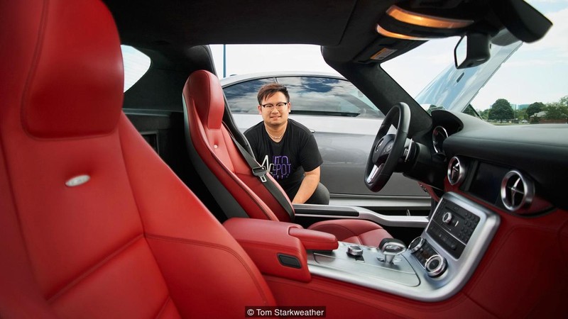 Nicholas Lam ngồi bên chiếc siêu xe Mercedes-Benz SLS của mình.