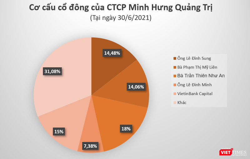 Trong nửa đầu năm 2021, ông Lê Đình Sung và phu nhân Phạm Thị Mỹ Liên đã bán ra lượng lớn cổ phần Minh Hưng Quảng Trị, giảm tỉ lệ sở hữu xuống chỉ còn 28,54%.