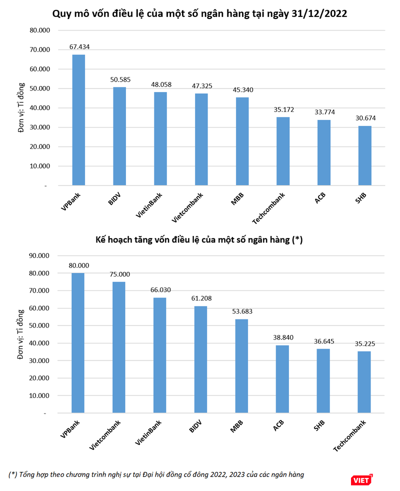 Lưu ý rằng, tiến độ tăng vốn điều lệ – vì nhiều lý do chủ quan và khách quan – sẽ có sự khác biệt giữa các nhà băng. Bên cạnh đó, quan điểm về việc tăng vốn điều lệ giữa các ngân hàng cũng có sự khác biệt.