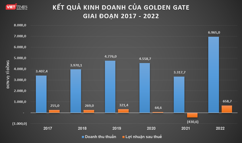 Trong năm 2022, Golden Gate ghi nhận chi phí bán hàng ở mức 3.118,6 tỉ đồng, tăng 52,1% so với năm trước. Các khoản chi phí quản lý doanh nghiệp, chi phí tài chính cũng lần lượt tăng 63,5% và 153,4% so với cùng kỳ, đạt 468,6 tỉ đồng và 111,5 tỉ đồng.