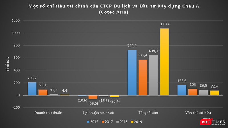 Về tình hình kinh doanh, dữ liệu của VietTimes cho thấy, trong giai đoạn 2016 - 2019, Cotec Asia liên tục báo lỗ, đồng thời chỉ tiêu doanh thu có xu hướng giảm dần qua các năm.