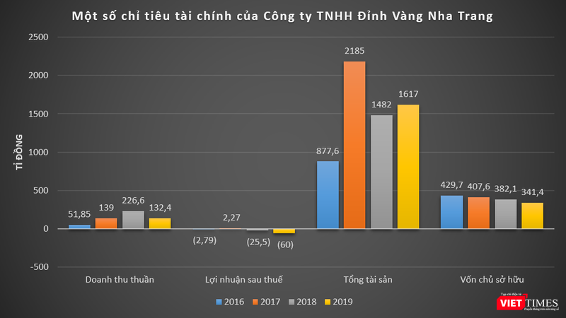 Dữ liệu của VietTimes cho thấy, trong giai đoạn 2016 - 2019, Golden Top Nha Trang (công ty mẹ) chỉ báo lãi 1 lần vào năm 2017 với lãi sau thuế vỏn vẹn 2,27 tỉ đồng. Gần nhất, năm 2019, Golden Top Nha Trang ghi nhận doanh thu thuần đạt 132,4 tỉ đồng, giảm 41,5% so với năm trước; báo lỗ sau thuế hơn 60 tỉ đồng, trong khi năm 2018 cũng lỗ 25,5 tỉ đồng.