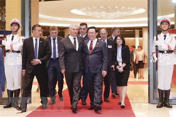 Tại Nhà Quốc hội, Chủ tịch Quốc hội Vương Đình Huệ đã chủ trì Lễ đón trọng thể Chủ tịch Duma Quốc gia Quốc hội Liên bang Nga Vyacheslav Victorovich Volodin và Đoàn.