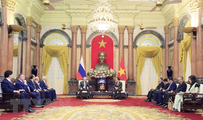 Chủ tịch nước nêu rõ đông đảo người dân Việt Nam có cảm tình tốt đẹp đối với đất nước và con người Liên bang Nga; đồng thời cho biết, luôn lưu giữ nhiều kỷ niệm đẹp, sâu sắc về đất nước và con người Liên bang Nga trong các chuyến công tác, làm việc tại Liên bang Nga trước đây.