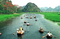 Du khách đi đò vãn cảnh chùa Hương (Ảnh - Minh Thuý) |