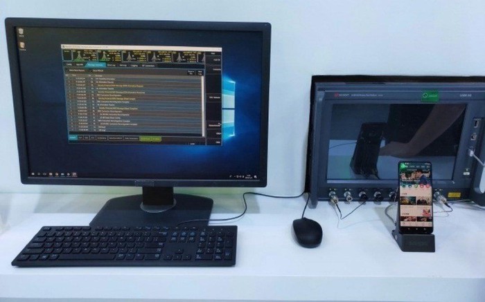 Chiếc Oppo Find X đang gắn với modem để thử nghiệm mạng 5G.