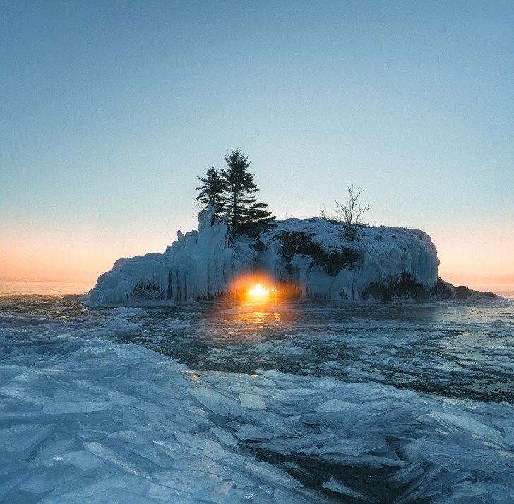 2. Thời điểm hiếm có trong năm khi ánh nắng buổi sáng chiếu thẳng lên hoàn hảo với cái lỗ hổng ở Hollow Rock.