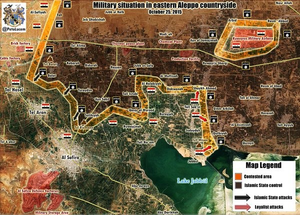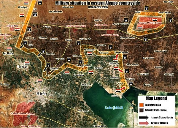 Bản đồ hoạt động tác chiến của quân đội Syria ở phía Đông tỉnh Aleppo