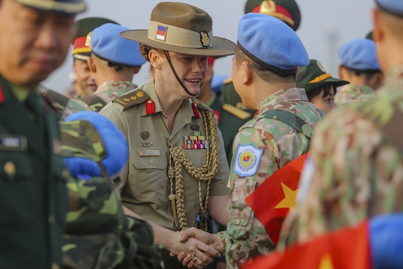 Lễ tiễn lực lượng có mặt của Chuẩn đô đốc Nguyễn Trọng Bình - Phó Tổng Tham mưu Trưởng Quân đội Nhân dân Việt Nam và bà Robyn Mudie - Đại sứ Australia tại Việt Nam.