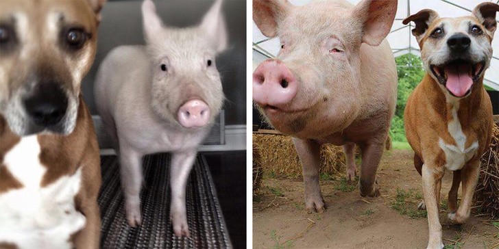 1. Gặp gỡ Peanut và Keeva, một chú heo con và một chú chó con, cả hai đã lớn và vẫn thân thiết với nhau như ngày nào