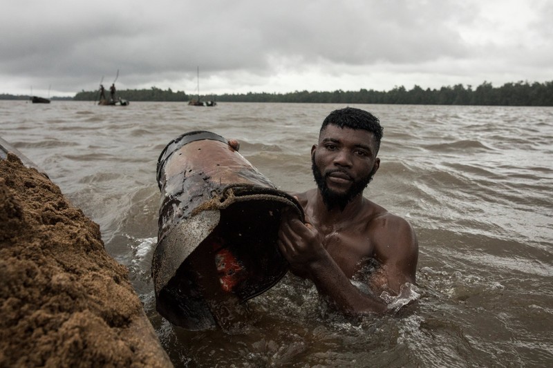 6. Các thợ lặn cát ở Cameroon múc khoảng 1,7 tấn cát trong khoảng ba giờ. "Công việc nguy hiểm chết người và các thợ lặn mò cát khi nước thủy triều thấp." Cái chết xảy ra thường xuyên, bao gồm chết đuối, bị rắn độc cắn, ăn phải cát và bị đâm bởi tàu thuyền”.