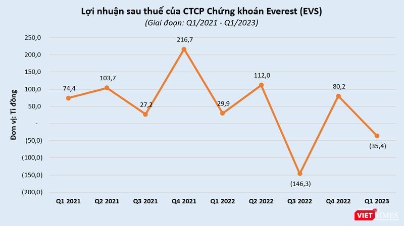 Kết thúc quý 1/2023, EVS ghi nhận doanh thu hoạt động đạt 61,8 tỉ đồng, giảm 79,8% so với cùng kỳ năm trước. Lợi nhuận sau thuế ở mức âm 35,3 tỉ đồng, trong khi cùng kỳ năm 2022 ở mức dương 29,9 tỉ đồng.