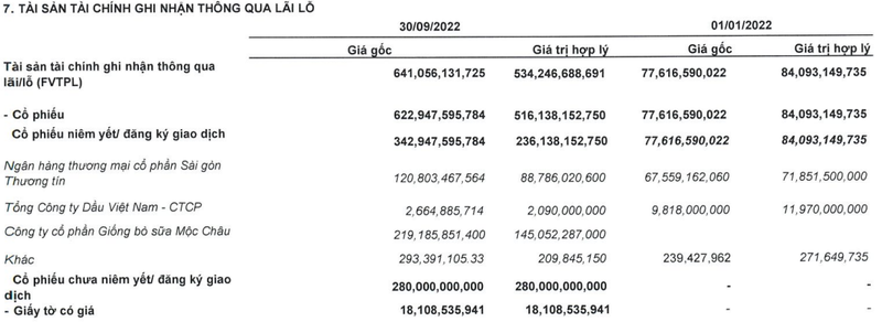 Tại ngày 30/9/2022, tài sản chính ghi ghi nhận thông qua lãi/lỗ (FVTPL) của DNSE có giá trị ghi sổ đạt 641 tỉ đồng, cao gấp 8,2 lần so với đầu năm. Trong đó, tổng giá trị đầu tư cổ phiếu là 622,9 tỉ đồng (giá trị hợp lý là 516,1 tỉ đồng).