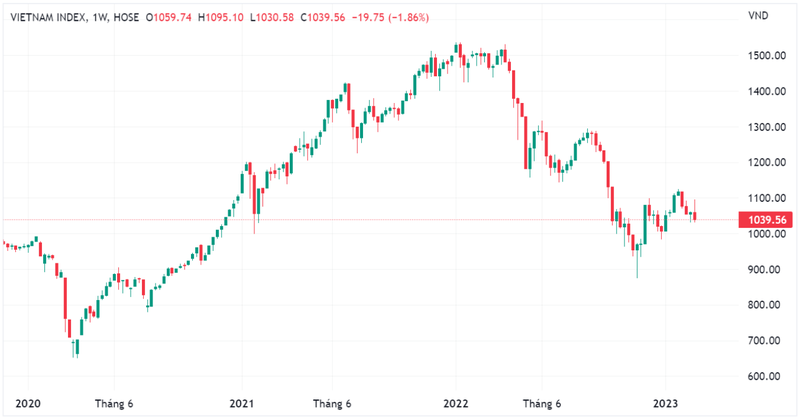 Chỉ số này liên tiếp giảm trong 4 phiên sau đó và chốt tuần tại 1.039,56, giảm 19,75 điểm (-1,86%).