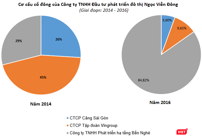 Và dữ liệu của VietTimes cho thấy, Bến Nghé đã góp thêm số tiền lên tới hơn 4.580 tỷ đồng để giúp Ngọc Viễn Đông tăng vốn điều lệ thành công, nâng tỷ lệ sở hữu lên mức 84,82% (theo đăng ký thay đổi nội dung doanh nghiệp vào tháng 5/2016). Các cổ đông khác là VIC và Cảng Sài Gòn giảm tỷ lệ sở hữu xuống chỉ còn 9,62% và 5,6% vốn điều lệ.