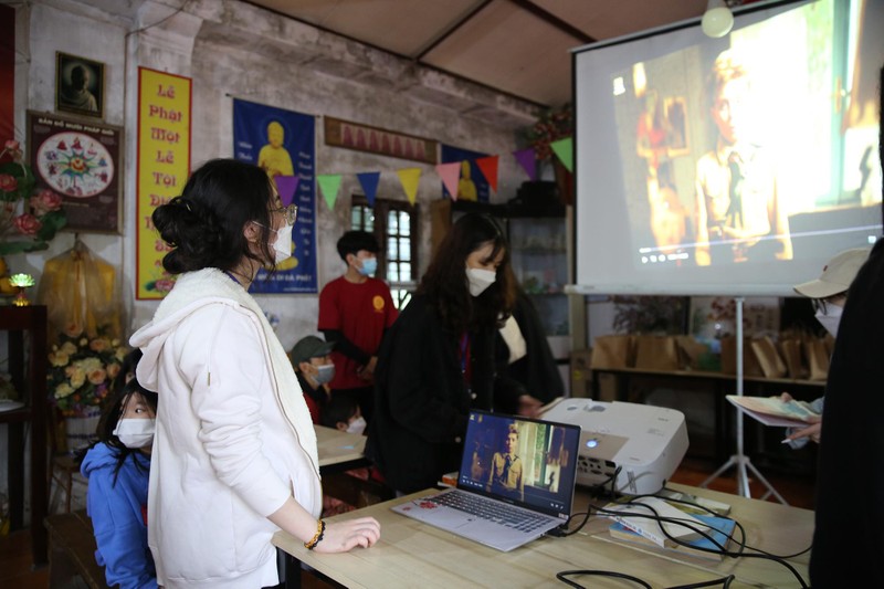 Các em nhỏ chăm chú theo dõi bộ phim |