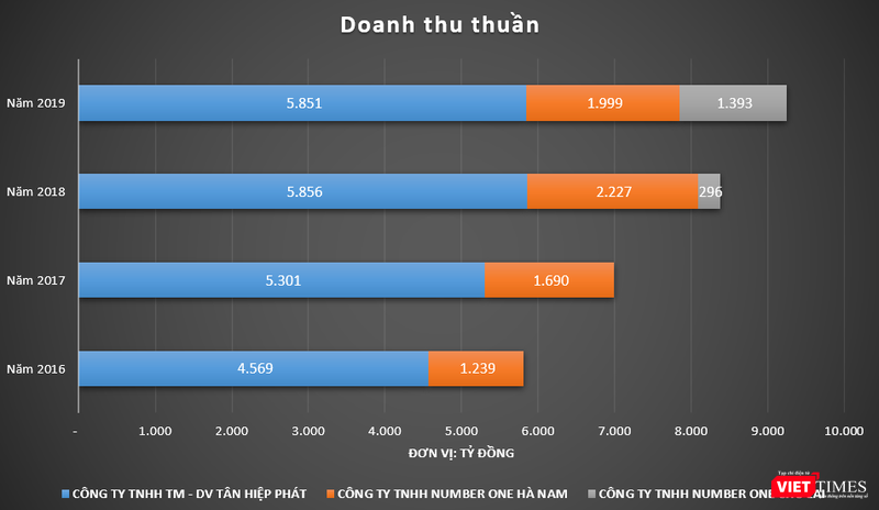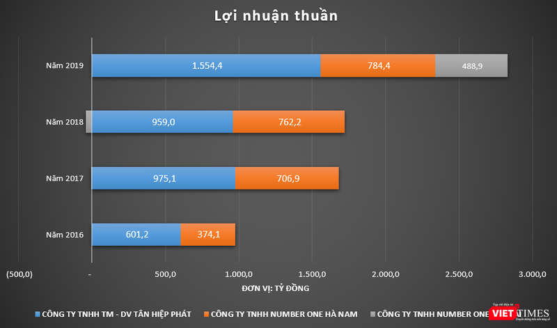 Trong 4 năm gần nhất, một số doanh nghiệp lớn của nhóm Tân Hiệp Phát đều có sự tăng trưởng doanh thu và lợi nhuận tích cực như: Công ty TNHH Thương mại Dịch vụ Tân Hiệp Phát (Tân Hiệp Phát), Công ty TNHH Number One Hà Nam (Number One Hà Nam) và Công ty TNHH Number One Chu Lai (Number One Chu Lai).
