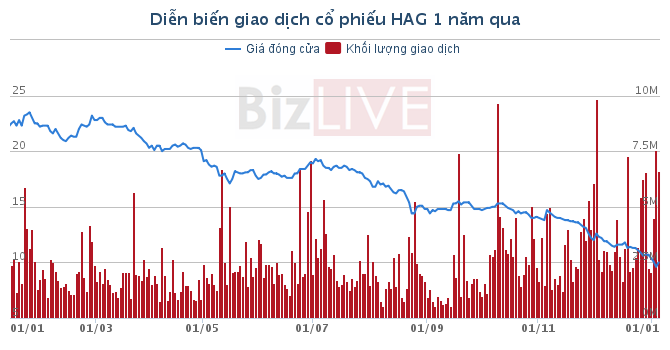 Đáng chú ý, trong phiên giao dịch ngày 5/1, lần đầu tiên kể từ khi lên sàn cuối năm 2008, cổ phiếu HAG rớt xuống dưới mệnh giá.