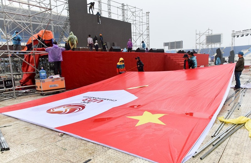 Sân vận động Mỹ Đình đang lắp ráp màn hình lớn phục vụ người hâm mộ