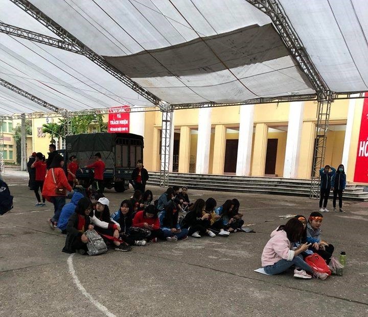 Các sinh viên nữ cũng cổ vũ cho U23 Việt Nam