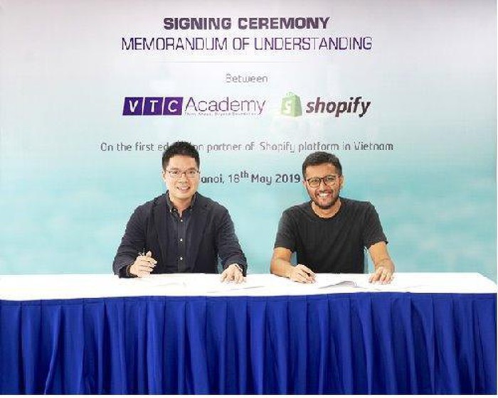 Trong khuôn khổ sự kiện, Học viện VTC Academy đã cùng đại diện của Shopify ký biên bản ghi nhớ chính thức về việc tổ chức khóa học lập trình trên nền tảng Shopify. Theo đó, VTC Academy sẽ trở thành đối tác đào tạo đầu tiên và duy nhất của Shopify ở Việt Nam đến thời điểm hiện tại. Khóa học chuyên sâu này sẽ mang lại cho các học viên tham dự những kiến thức lập trình hữu ích về nền tảng Shopify để tăng thêm cơ hội việc làm cũng như thu nhập.