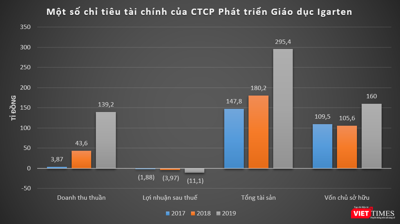 Dữ liệu của VietTimes cho thấy, trong giai đoạn 2017 - 2019, doanh thu thuần của Igarten liên tục tăng trưởng mạnh, từ 3,87 tỉ đồng năm 2017 lên 43,6 tỉ đồng năm 2018, tăng gấp 11 lần. Chỉ tiêu này tiếp tục tăng gấp gần 3,2 lần lên đạt 139,2 tỉ đồng vào năm 2019.