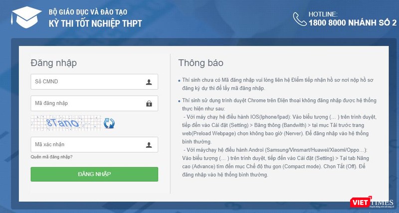 Bước 1: Truy cập địa chỉ https://viettimes.vn/tra-cuu-diem-thi.html