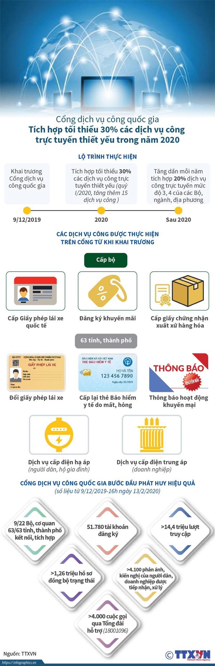 Thực hiện dịch vụ công trực tuyến qua cổng dịch vụ công quốc gia sẽ giúp người dân, doanh nghiệp thuận lợi hơn nhiều do có thể tái sử dụng các thông tin đã có và tiết kiệm thời gian chuẩn bị hồ sơ, từ đó, giảm đáng kể chi phí xã hội trong thực hiện thủ tục hành chính, đặc biệt là những thủ tục hành chính có liên quan đến nhiều cơ quan./.