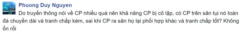 Dù sao đi nữa đây mới chỉ là trận đấu đá chính từ đầu thứ 2 của Công Phượng, đồng thời Jeonbuk FC là đội bóng rất mạnh, nên những kết luận của các cổ động viên là không có cơ sở. Hy vọng Công Phượng và đồng đội của anh có thể thi đấu tốt hơn trong những trận tới.