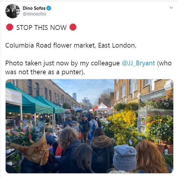 Các “Covidiots” tại chợ hoa Columbia Road, Đông Luân Đôn, nước Anh. Ảnh: Dino Sofos/Twitter.