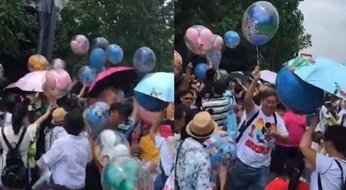 Được biết nhóm du khách trên tới Disneyland Thượng Hải bằng tàu điện ngầm. Do đó họ sẽ khó có thể đem số bóng kia về nhà vì quy định tại các ga tàu điện ngầm nghiêm cấm mang bóng bay lên tàu. Thay vào đó, họ có thể cầm số bóng trên và bán lại cho những người khác tại lối ra ga tàu điện ngầm với giá bán chỉ bằng một nửa.