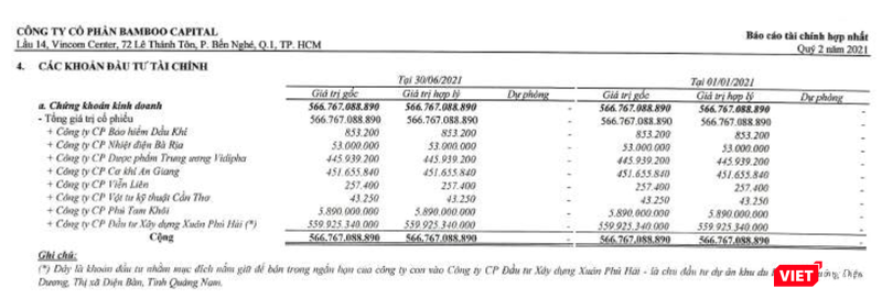 Khoản đầu tư tài chính 559,9 tỉ đồng vào Xuân Phú Hải của công ty con BCG được ghi nhận trên báo cáo tài chính hợp nhất từ cuối năm ngoái, với mục đích nắm giữ để bán trong ngắn hạn. Song, cho tới cuối quý 2/2021, nhóm BCG vẫn chưa bán được khoản đầu tư này.