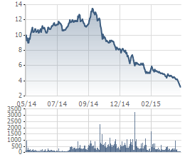 Trong nửa năm trở lại đây, tức từ tháng 10/2014 – sau biến cố ông Hà Văn Thắm – Chủ tịch HĐQT của Tập đoàn Đại Dương (mã: OGC) bị bắt giữ, giá cổ phiếu này đã không ngừng đi xuống. Đóng cửa phiên giao dịch ngày 07/05, OGC chỉ còn giá 3.200 đồng và nhà đầu tư chỉ còn biết chờ đợi xem cổ phiếu có thể rơi đến mức giá nào.