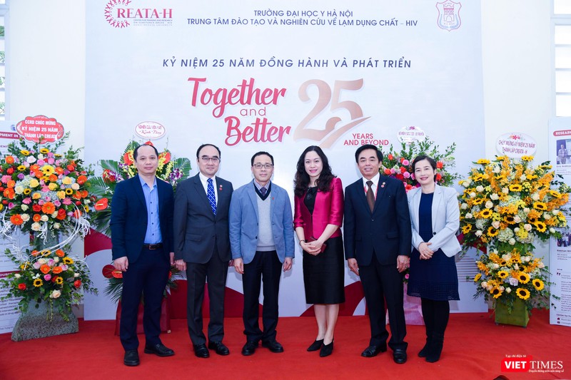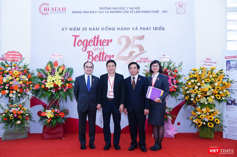 Các đại biểu cùng lãnh đạo Trường Đại học Y Hà Nội, Trung tâm Nghiên cứu và Đào tạo về lạm dụng chất – HIV dự lễ kỷ niệm