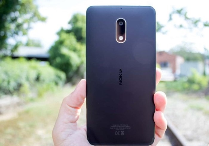 Mặt lưng của Nokia 6 cong nhẹ và phủ màu sơn đen mờ chống trơn khá hiệu quả nhưng vẫn bám dấu vân tay nhiều. Hai dải nhựa của ăng-ten được giấu sát mép viền, camera và đèn flash LED hơi lồi nhẹ. Các nút bấm được gia công tỷ mỉ bằng kim loại, cảm giác bấm tốt.